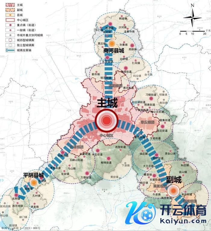 《筹商》初次建议了济南“主城”的看法。一方面,在面向2035年的城市神情框架中,携河北拓,稳步招引新旧动能调停起步区将成为济南进攻的城市策略,将新旧动能调停起步区纳入中心城区进行消失筹商处置。另一方面,章丘、济阳城市组团与中心城区之间有关则更加细腻,因此《筹商》将中心城区与长清组团、章丘组团、济阳组团一齐算作济南主城,承载城市中枢功能,并通过向北、东南、西南三条城镇发展轴强化对济南全域及更大限制的引颈发射作用。