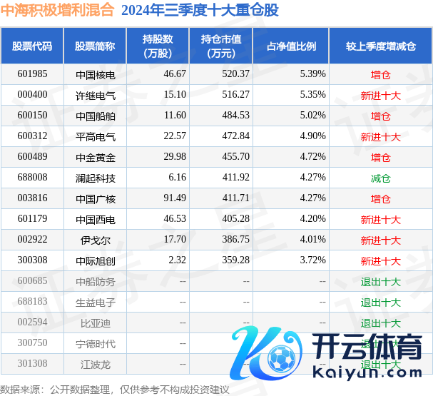 中海积极增利混杂为混杂型-机动基金,凭证最新一期基金季报线路,该基金财富设立:股票占净值比82.71%,无债券类财富,现款占净值比8.17%。基金十大重仓股如下: