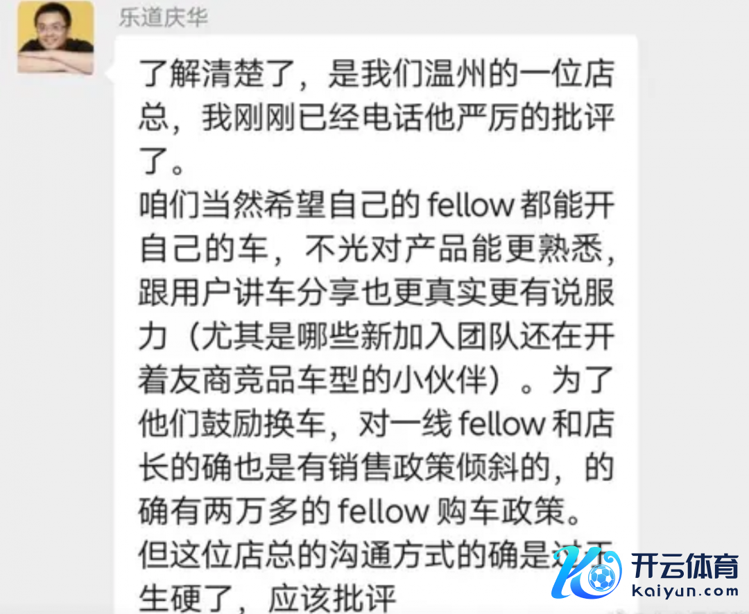 夏庆华复兴称,经了解,涉事的是温州地区的一位店长。他已亲身致电并严厉月旦了对方。公司固然但愿职工能驾驶自家品牌车辆,以便更真切地了解居品,并在与用户交流时提供更为真确、有劝服力的共享,罕见是对新加入团队且现在驾驶竞品车型的职工。可是,这位店长的疏浚形态确切是过于生硬了,应该月旦。