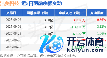 本站音讯,9月2日,洁好意思科技(002859)融资买入4471.84万元,融资偿还4117.12万元开云体育,融资净买入354.73万元,融资余额3.59亿元,近20个走动日中有13个走动日出现融资净买入。