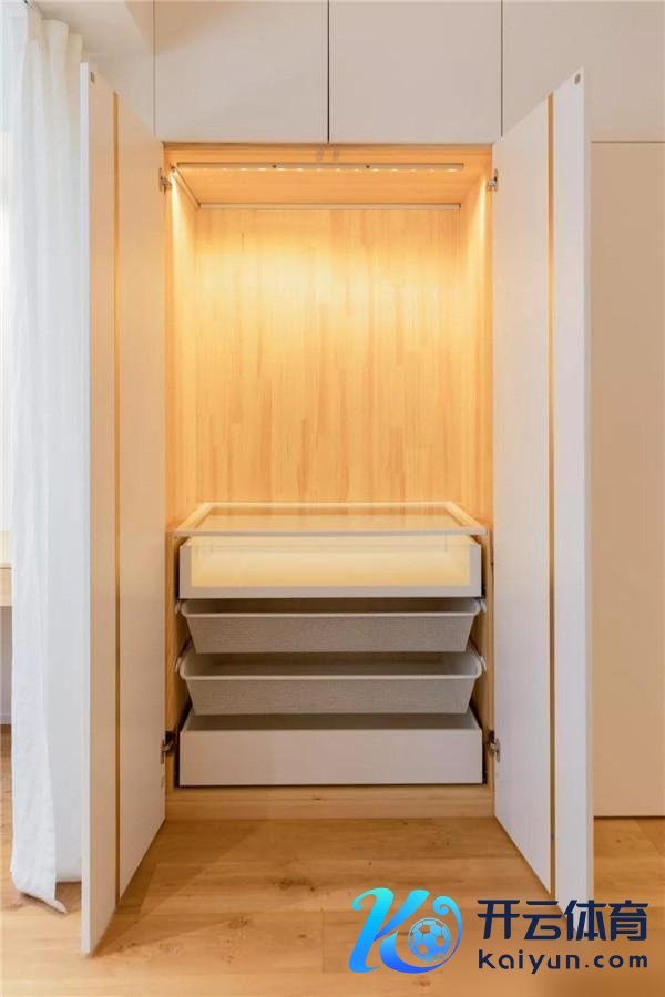 右边则是一个洞开式衣柜,然则男儿来找爸爸姆妈玩的期间就可以通过移门掀开隔出一个扫数区,让孩子坦然爸妈们坦然。